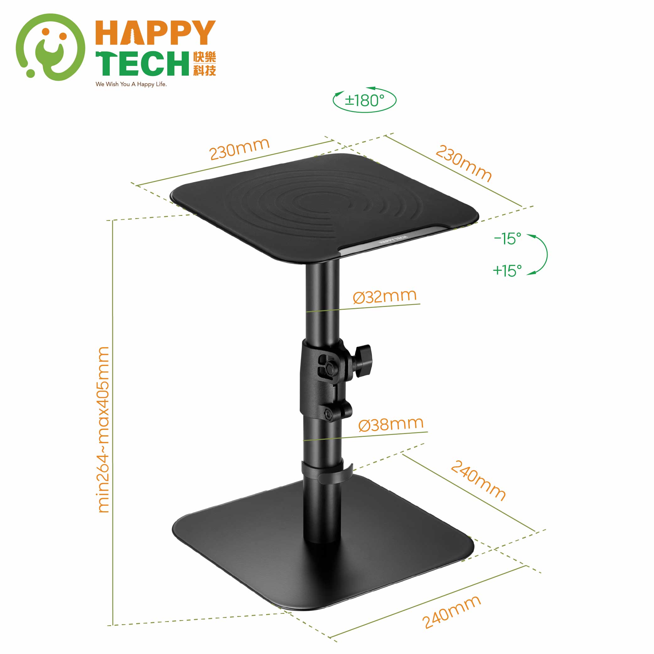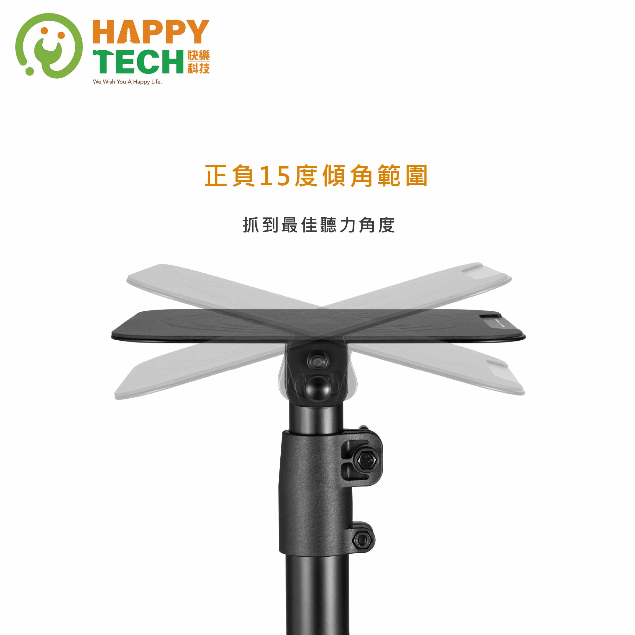 - ●平台可以360度旋轉,以及15度的傾斜,抓到最佳聽力角度。