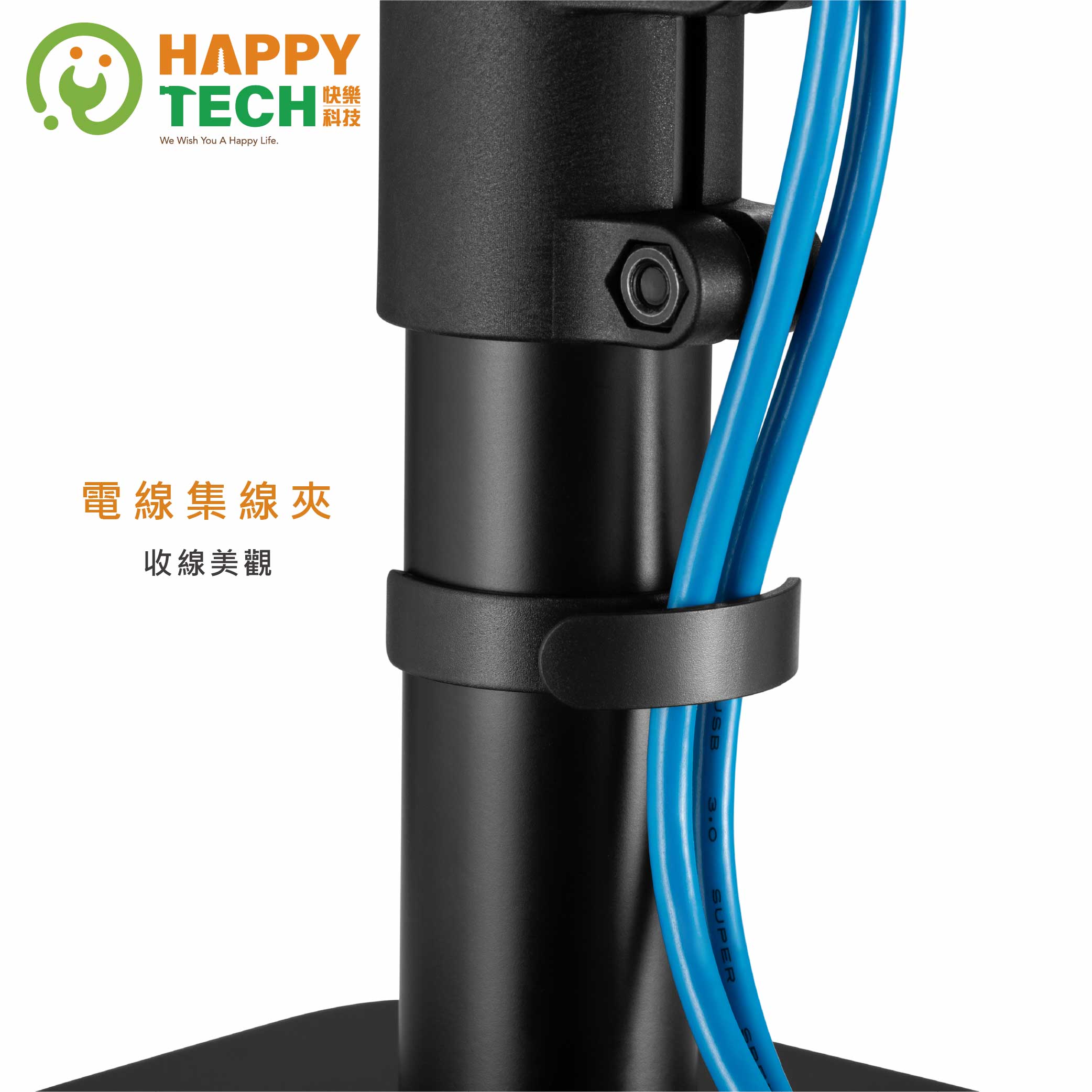 - ●加大了安裝的自由與彈性,支架立柱可調整高度,釋放更多桌面空間,讓環境更整齊。