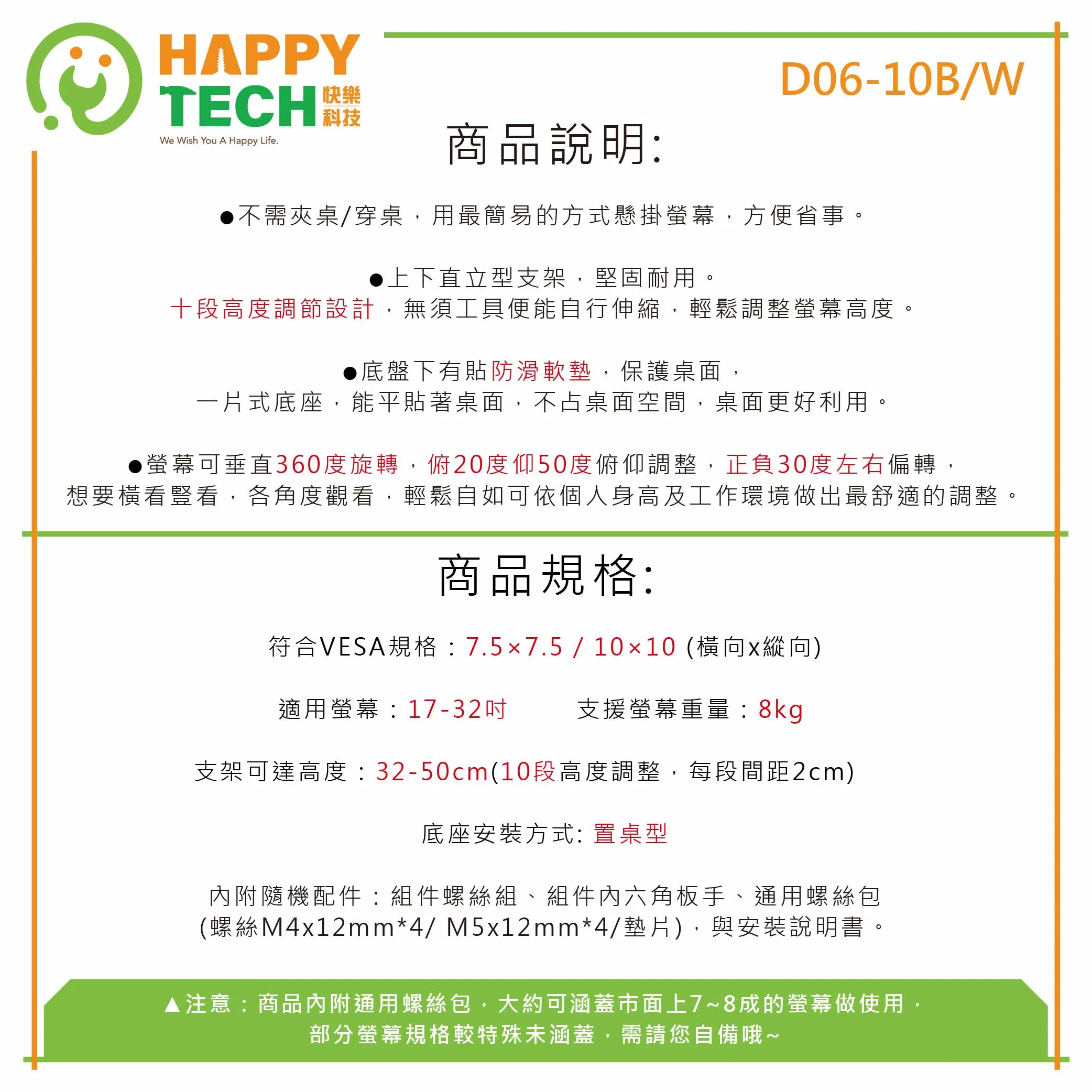 D06-10 高度調整 桌上型 螢幕支架 電腦螢幕架 置桌型 17~32